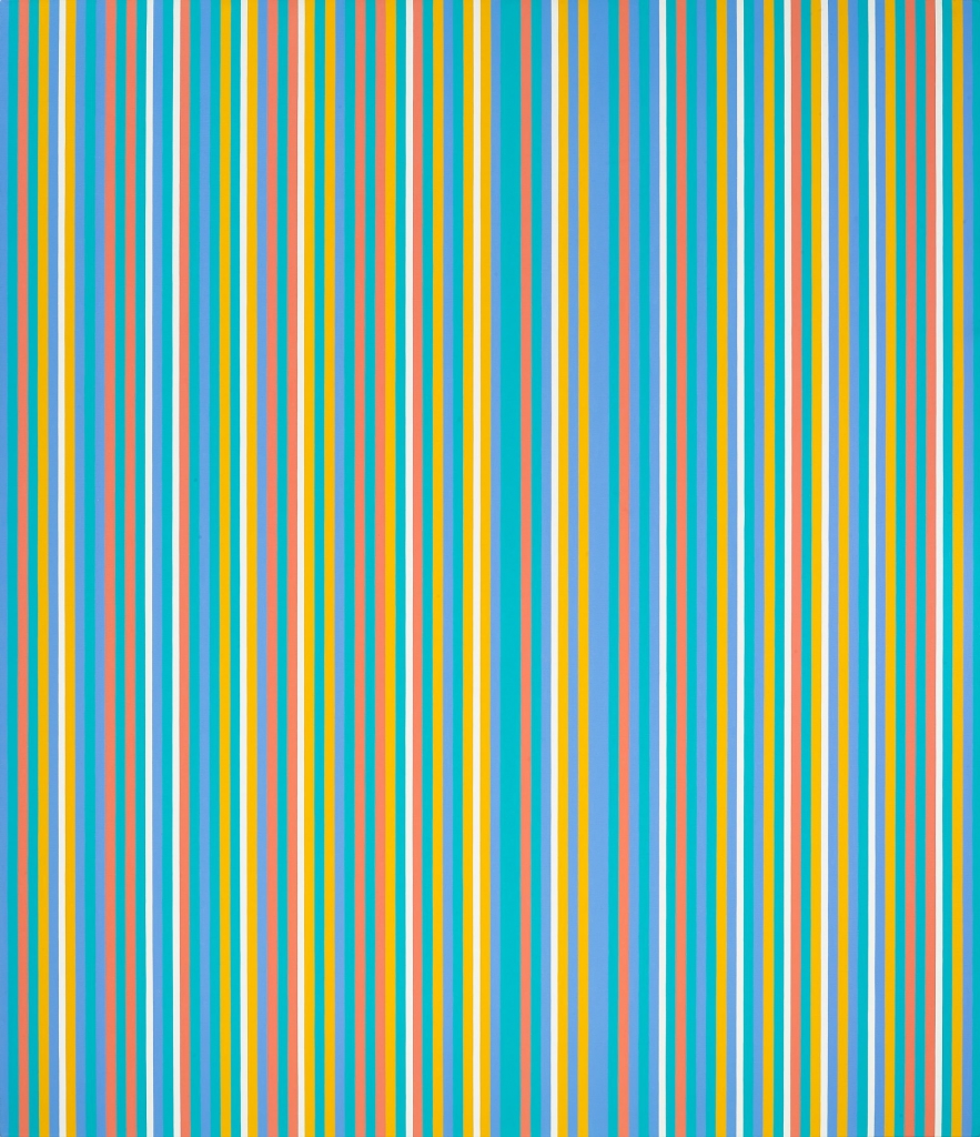布麗奇.萊利(Bridget Riley)的《Delos》拍出成交價2,094.5萬港元,為現代藝術夜場第五高價之作。(蘇富比提供)