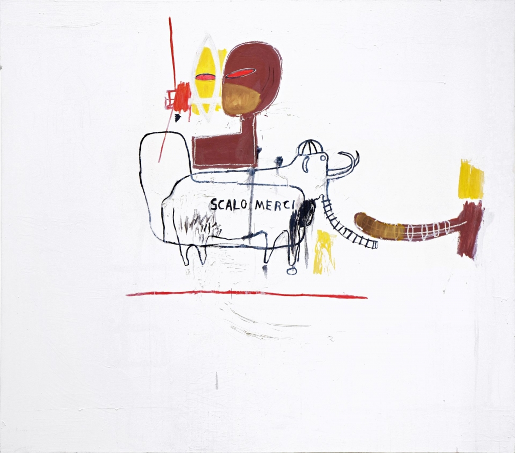 尚.米榭.巴斯奇亞(Jean-Michel Basquiat)的《象徵》成交價為2,820.5萬港元,為當代藝術夜場第三高價之作。(蘇富比提供)