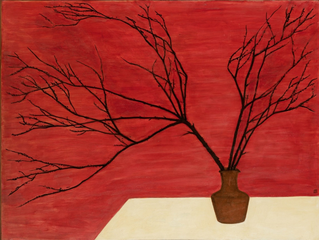 常玉的《紅底瓶枝》拍出8,669.2萬港元成交價,為現代藝術夜場最價昂之作。(蘇富比提供)