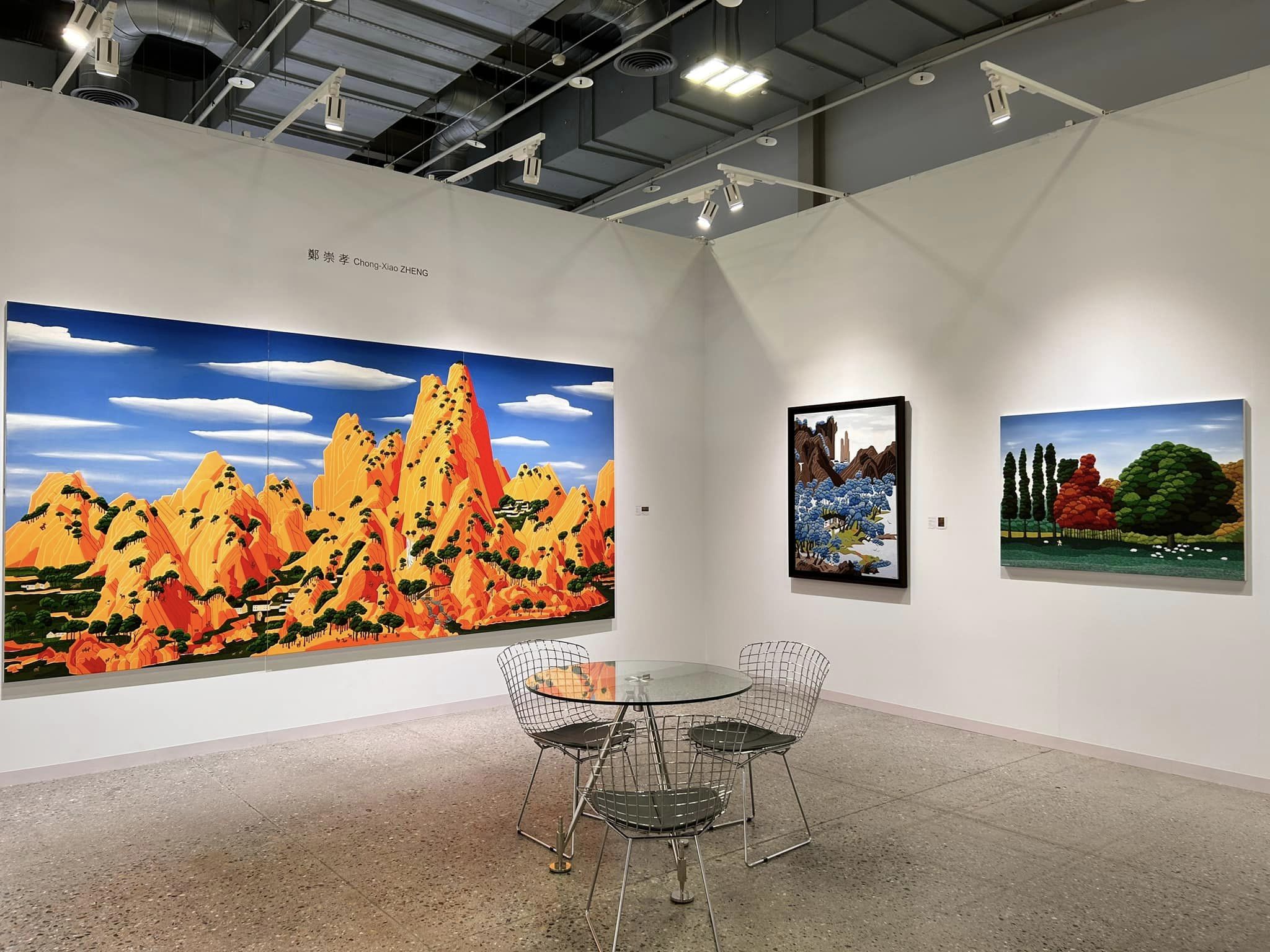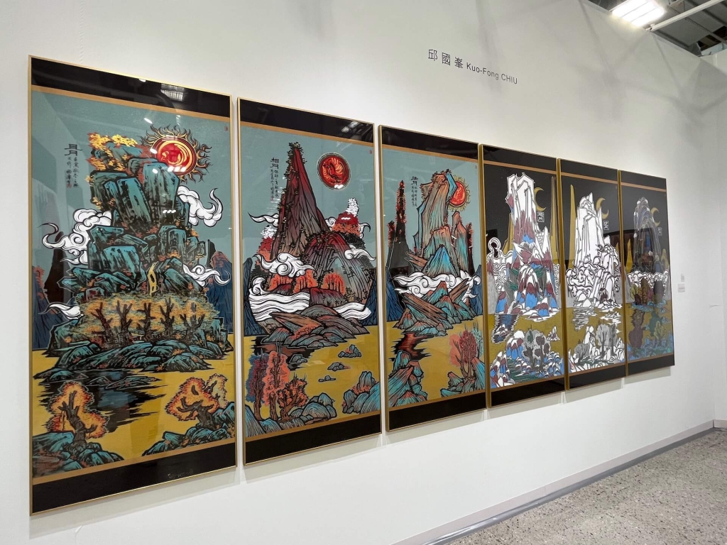 藝星藝術分別展出邱國峯、鄭崇孝兩位藝術家。有著豐厚中國美術史根基的邱國峯,持續在古典文化傳承中尋找新意,此次帶來十二件系列作品《爾雅十二月》,探討如何在重複的畫面構圖中建立變化、尋求差異,如同王羲之《蘭亭序》中重複出現的21個「之」字,都各具美感風韻一般,邱國峯提出「視覺模組化」的概念,衝撞傳統美術教育對於「重複」的排斥。