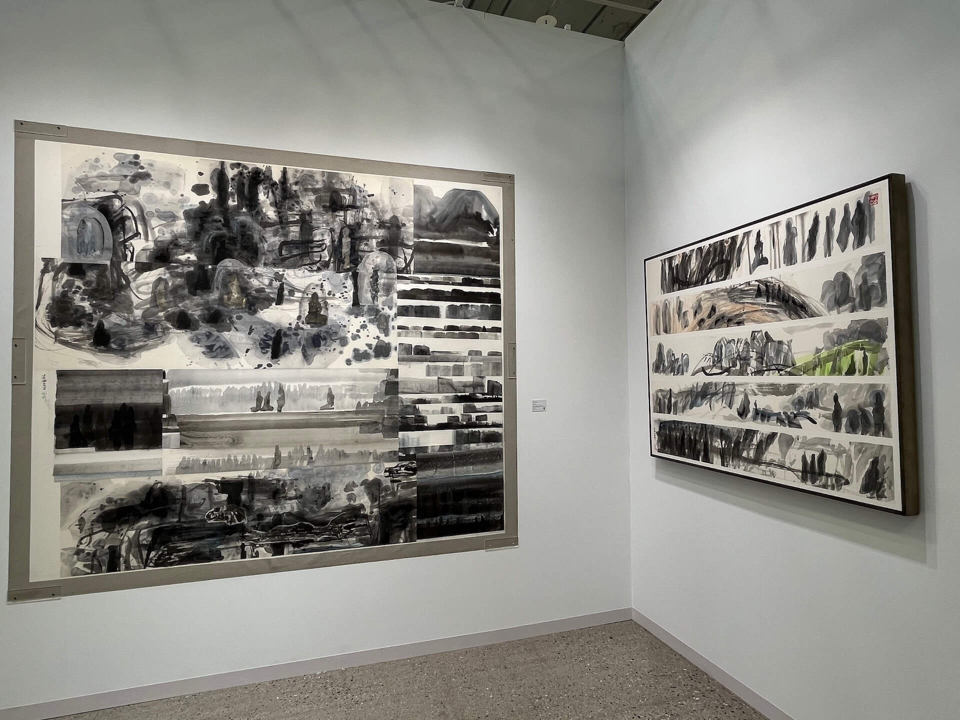 日本小暮畫廊此次在展位中帶來廣島藝術家若佐慎一的個展「未來的痕跡」,展出了知名的木板複合媒材架上作品,以及首次於日本境外發表的木雕作品,展場的整體感細緻,吸睛而不刺眼。