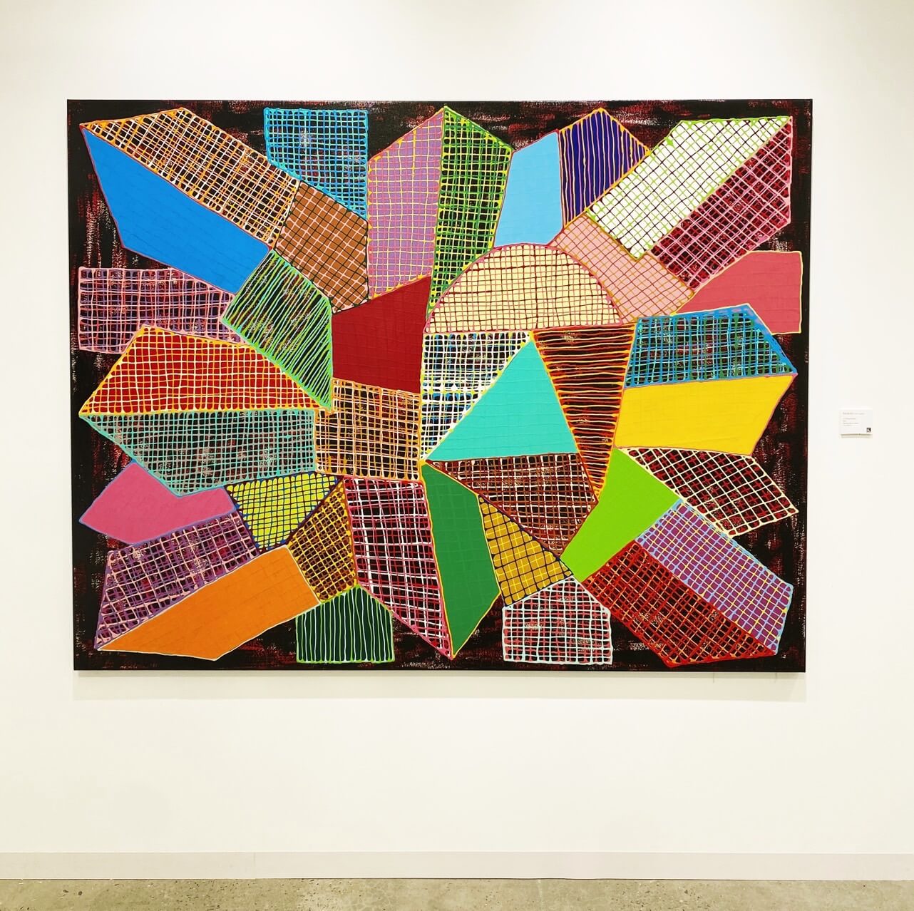 Pen Robit 的《Rebuilding on the Black》反映了歷經紅色高棉的多年後,柬埔寨文化、遺產和建築在當代的破壞和惡化狀態。藝術家通過描繪柬埔寨社會中的水布織品之幾何形狀,轉化構建一個想像中的大都市,其中充滿了傳統柬埔寨圍巾紋樣。其色彩顏色與形式的選擇,亦以柬埔寨常民文化為主體,回應蒙德里安轉化都市景觀的幾何繪畫之現代性。