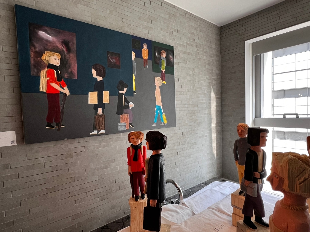 此次參與台南藝博,丁丁藝術空間以13位來自歐洲、日本等地的藝術家聯展,藉由三間展廳的串連,呈現多元的視覺語彙。重點作品包括西班牙藝術家莫伊(Moisés Yagues)的最新創作,其風格清新詼諧,主要以圓頭人物展現角色的內在世界,作品中常融合梯子、花草等元素,展現獨特的詩意與動感。同樣來自西班牙,蒙吉(Alejandro Monge)擅長運用錯視技巧,無論是其繪畫或雕塑,均帶有超現實的特色,反映其對當今社會價值的反思與質疑。此次也在六樓公眾展區展出大型人像雕塑。萊斯(Rhys Brown)以其童年喜愛的浮雕風格和超大泰迪熊畫作而聞名。他的創作技巧——素拓印(Vegan Gyotaku),靈感來自日本傳統的魚拓技法。這次丁丁藝術空間也特別推出萊斯的限量版T恤,讓觀眾貼身穿戴童年的記憶。