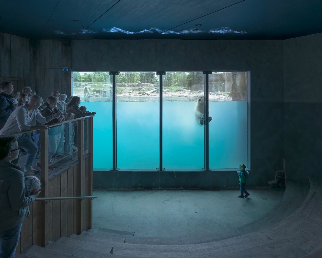 就攝影方法而言,羅晟文從一開始就捨棄斷章取義的擬人化手法來拍攝動物園中的北極熊,而讓北極熊所處的環境、面對觀眾的空間關係等都盡可能出現在同一畫面中,這樣一來,便可造就視覺上的「不自然」的尷尬與衝突。早期羅晟文更多地採取接近遊客的視角;後來隨著他愈來愈多地得以接觸動物園的管理者、研究者,拍攝視角也從早期關注動物與觀眾之間的關係,更退後幾步,針對展區環境、乃至展區與其他展區之間不同關係而進行更為全景的觀察。與此同時,這一計畫也與近年來國際間對展演動物處境的反思產生共振,創作者也透過這一計畫的執行,對於生態議題的多面性有了更深入的體認。