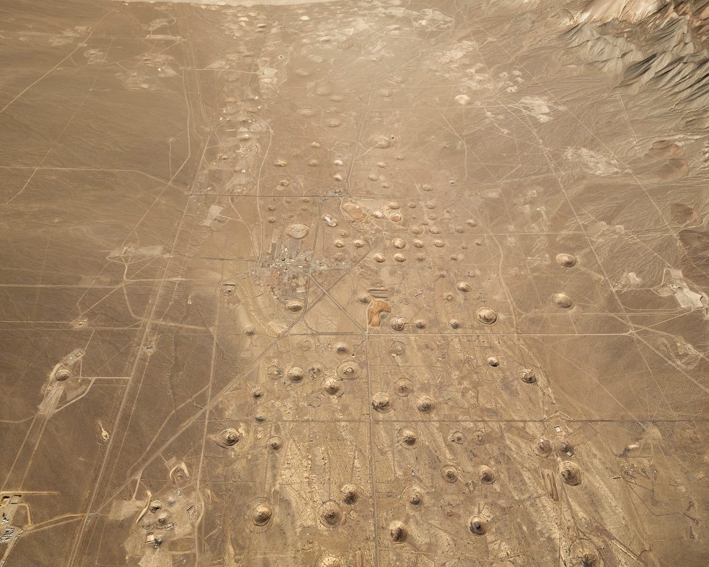 「落塵」(2015-2022)計畫則瞄準世界上眾多進行過核爆試驗的地點,運用Google Earth資料進行攫取、拼貼操作,創作出擬仿大型相機視角的地景重建。羅晟文在此發展了2015年曾在荷蘭AKV|St.Joost藝術學院參加的「Playing with Reality」工作坊之精神,即「將現實視為媒材本身、而非取材對象」,透過「遊戲」的方式來重塑圖像化的現實,這同時呼應了人類面對新科技時、通常都會先產生的「遊戲」行為,擴展了「攝影」的傳統意義。這一計畫也探討了攝影與圖像、與現實之間的連結與區隔,Google Earth圖像資料一方面提供了非個體創作者所能製造的影像,賦予個體創作者以獨特形態和意義的「媒材」或「現成物」;另一方面,考量到資料來源受意識形態與文化影響的問題,這些圖像是否真的可代表現實,也是「落塵」系列拋出的思考。