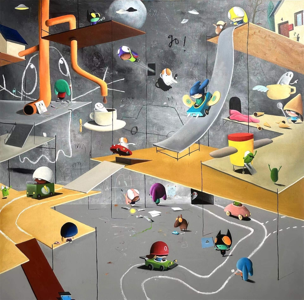 亮點展品尚有近年迅速在國際藝壇打響名號的西班牙藝術家埃德加.普蘭斯(Edgar Plans)的《競賽》(The Race)。普蘭斯的創作靈感來自於塗鴉、街頭藝術、漫畫、插圖與動畫電影等多方滋養。他將筆下的可愛人物形象概稱為「動物英雄」(Hero Animals),他們團結、友愛、充滿好奇心與探索勇氣,始終童心未泯地把生活環境當成一個巨大的遊樂場,儘管其用色鮮豔、動感十足,帶有卡通美學風格,實際上卻觸及極為嚴肅的議題。普蘭斯的作品猶如一個個當代童話,鼓勵並引導觀者重新找回自己被社會消磨掉的理想與力量,更加積極地面對未來的生活和挑戰。