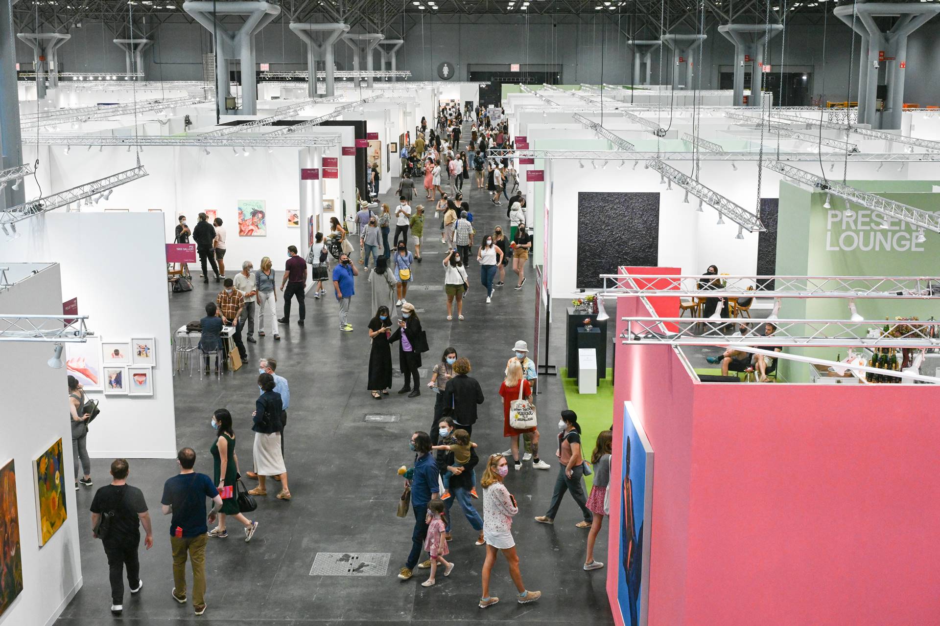 2020年的軍械庫能夠趕上疫情來襲之前的末班車無疑是幸運的。與此同時,它的順利舉辦也在某些方面是必然的。相比起許多以國際融合為基礎的展會來說,它看似單一的地區性在應對跨境形勢的巨變時展現出更強的靈活性。雖然美國境內航線已全面恢復,前總統川普(Donald Trump)在去年簽署的防疫法令仍禁止來自中國、英國、法國等歐洲申根國的旅客直接進入美國,除非他們持有美國護照或提前在第三國停留14天。然而,這些被列入「紅色名單」的國家恰恰是與美國共同推動世界藝術市場的主力軍。對於原本就深受本國疫情困擾的畫廊經營者來說,遠赴美國參展更是有心無力。最早發起於倫敦的紐約弗里茲(Frieze New York)於今年五月打響了疫情爆發後美國境內藝博會的第一砲,在規模上卻從2019年的近200家參展畫廊銳減到64家。短短數月之後,軍械庫頂著Delta變異毒株所引發的恐慌,在超過半數的國外畫廊臨時改為線上參展的情況下,依然吸引了150多家參展商來到現場,與往年數量相當。