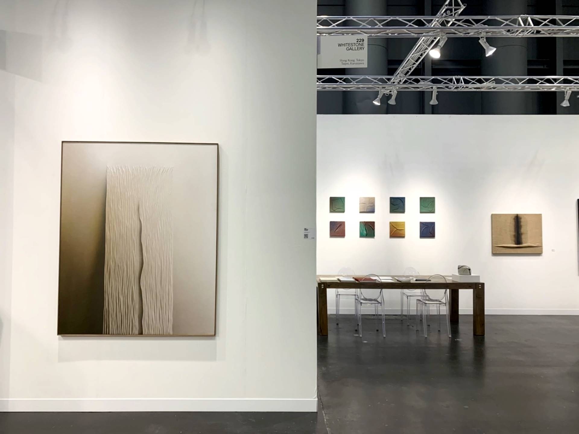 畫廊主可以通過當地臨時幫手的替代性出席來規避疫情帶來的旅行障礙,而藏家的現場觀展體驗則很難被他人取代。因此,今年的參展商們都不約而同地表示,出席現場的藏家幾乎全部來自紐約,或以紐約為中心的三州都會區。「我們甚至沒有看到那些來自洛杉磯、邁阿密和達拉斯等地區的藏家。他們往年都會飛來紐約參觀,但很遺憾今年沒能出席。」白石畫廊的經理樸志英(Jiyoung Park)說道。這家深耕於日本藝術市場並在香港、台北設有空間的跨國畫廊,今年已是第十次參展軍械庫。對比亞洲大本營和紐約展會上遇到的藏家,樸志英說道:「亞洲藏家對市場趨勢非常敏感。我們在台灣以及其它亞洲地區的藏家都非常想要了解更多新興藝術家,願意接受多種不同的風格。而許多美國、尤其是紐約的藏家已經進行了很多年的收藏,形成了相對固定的收藏方向。例如,我們有很多買家只收藏1950至1960年代戰後時期的作品,對特定的時期或風格有明顯的側重。」紐約藏家對於日本戰後藝術的興趣也反映在銷售成果上:展位整體約20萬美金的成交額包括數件具體派代表人物前川強(Tsuyoshi Maekawa)的粗麻材質作品。