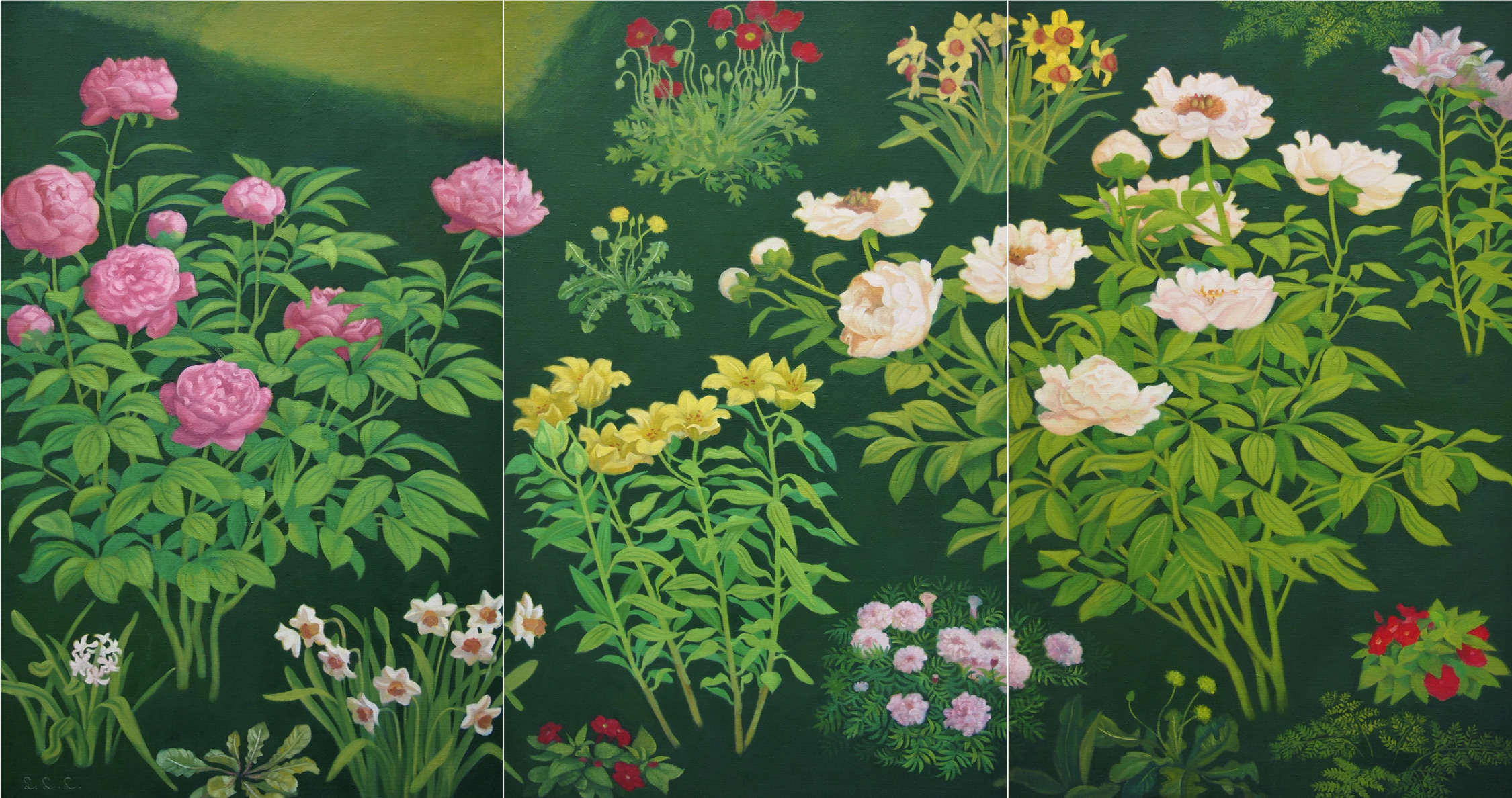 每位藝術家從不同的角度出發,結合成「人.之.境」的宏觀視野。旅居法國的臺灣藝術家林麗玲從人的觀點出發,洞悉細膩的人性與感官,在花朵中的作品中,看見的卻是人生點滴。 她巧妙的結合花與人於意識形態上的跨界,西方油畫媒材繪畫出東方面孔,百花在畫面上綻放也好似眾生芸芸,盛開的百合好比眼眸中的情慾一般無可避免,卻也燦爛、有限,為的是延續生命,因為沒有慾望,就沒有生命。