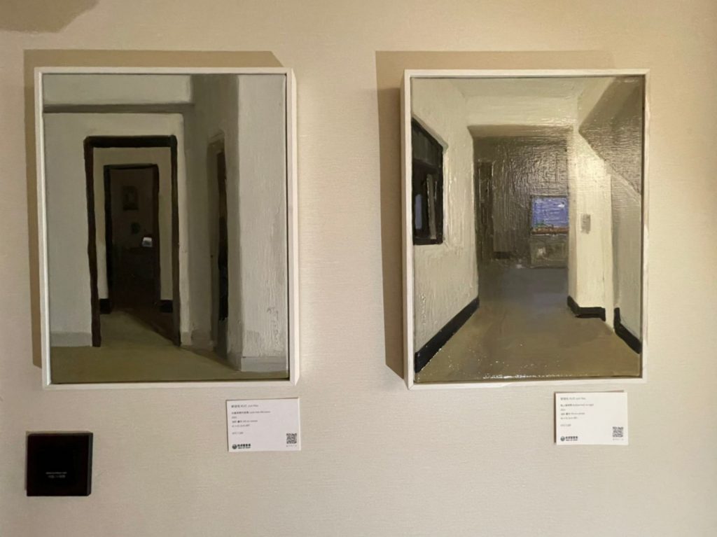 作為臺灣畫廊最具有悠久歷史之一的阿波羅畫廊在1602房展出12位臺灣新銳藝術家的繪畫及錄像作品。透過多元的創作技法與理念,挑戰感知並呈現創作者對於生活的體驗與感知豐富層次。其中,生於1998年的藝術家郭俊佑在疫情嚴峻期間,經由觀察自身所在的空間,所創作的小幅畫作,將恐懼與不安感延伸出更多想像的空間。