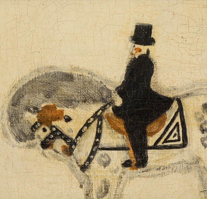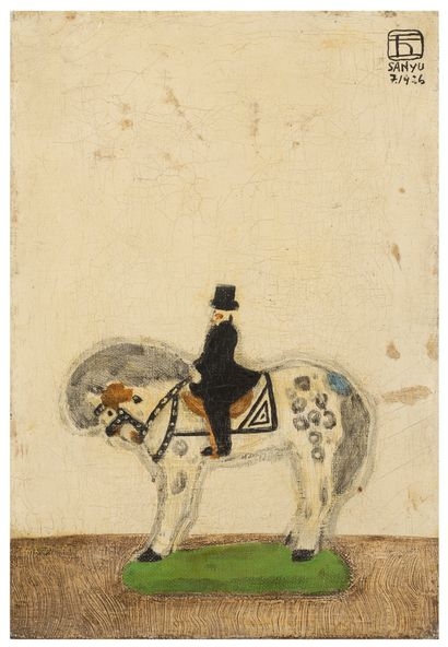 《馬背上的馬戲團團長先生》,畫面中描繪一件騎著馬的人物擺件。馬匹的鞍韉描繪細緻,與後來在常玉作品中常見的馬主題有很大的不同之處。此畫雖然使用油畫顏料創作,但整張畫面更傾向於東方式的表現手法,主題的平面性強烈,並接近東方傳統掛軸般的畫面特色,可以看到常玉已經在其早期創作中混合東西方藝術元素,發展出屬於自己的畫面風格。