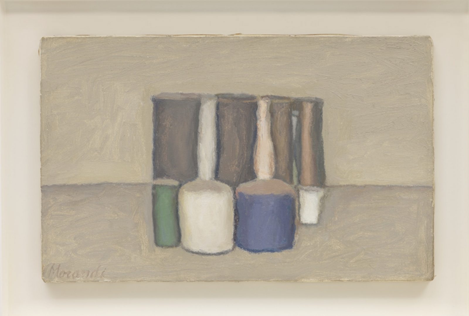 喬治·莫蘭迪,《靜物》,油彩、畫布,25.5 x 40.5cm,1959。(© 藝術家權利協會(ARS)、意大利作家及出版商協會(SIAE);圖片由卓納畫廊提供)