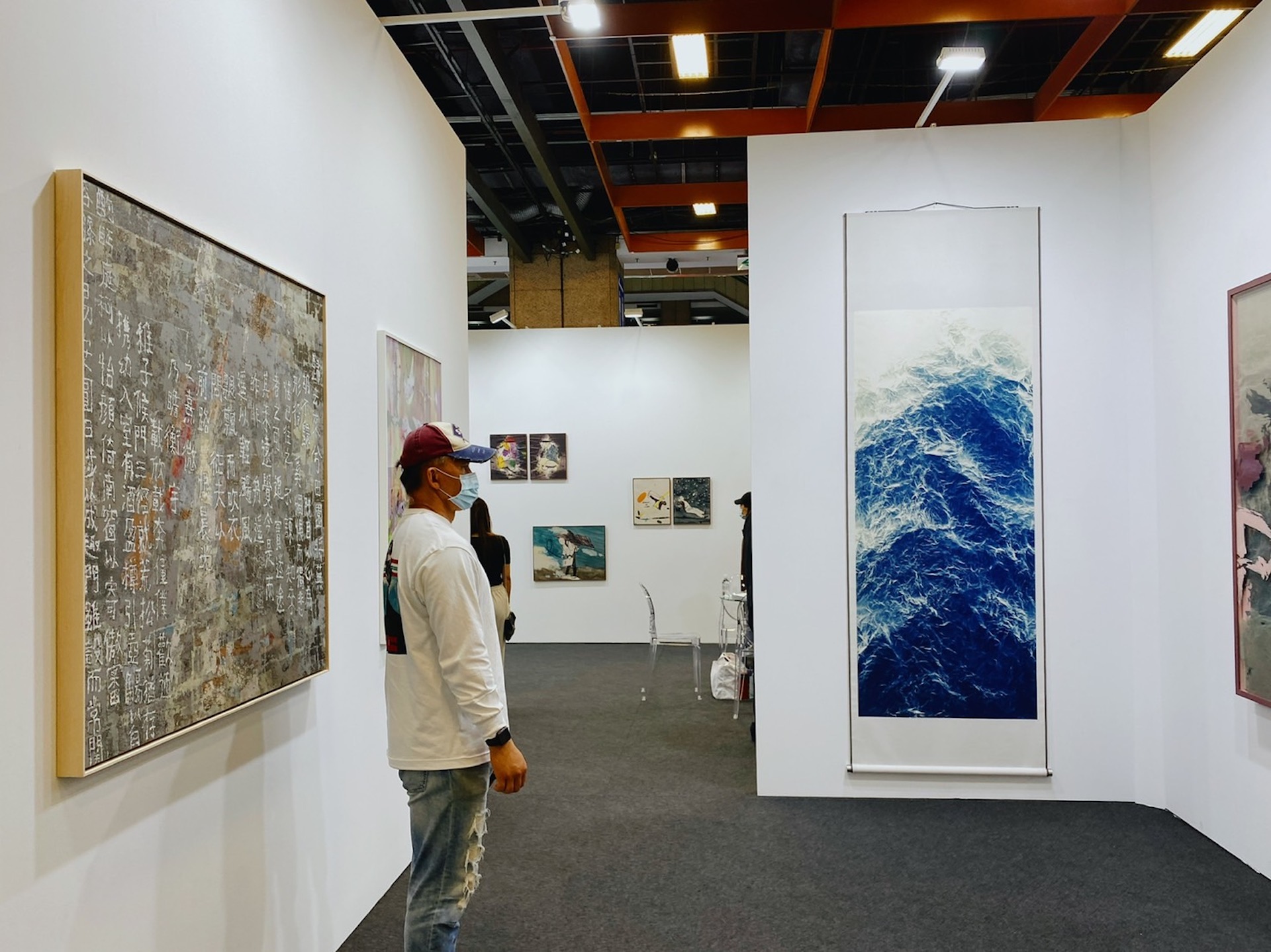 藍騎士畫廊此次在展位中,主打北京藝術家曹吉岡的作品,畫廊表示有不少新面孔藏家詢問,小尺寸作品於預展時皆已售出,大尺幅作品則有九成銷售量。藏家普遍對於曹吉岡2022新作在細節、邊框、色彩上所做突破,均給予正面評價。