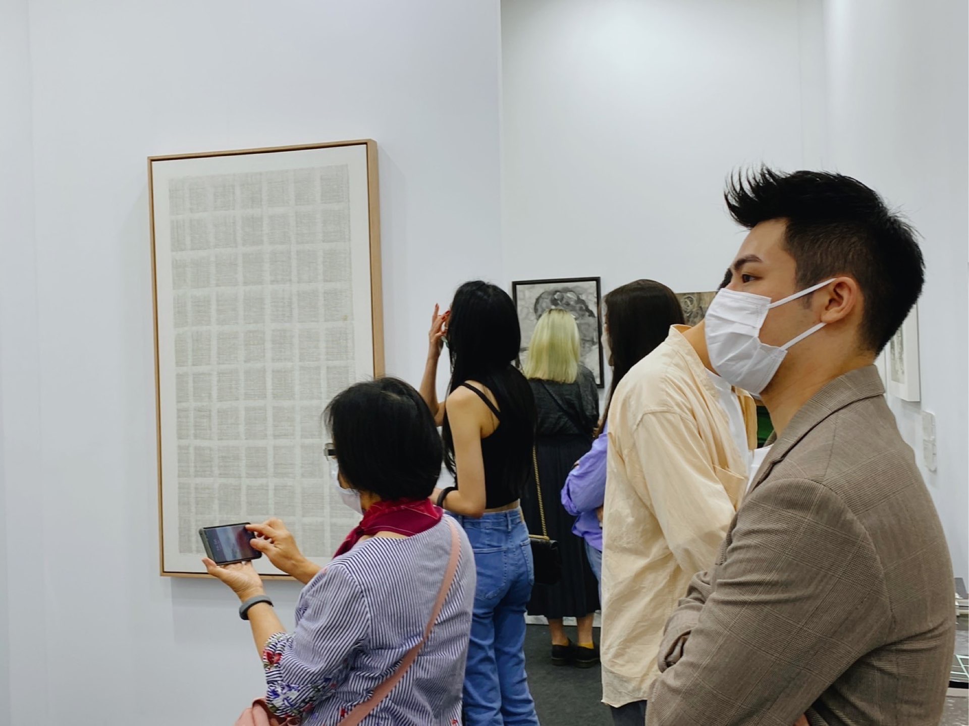 剛從本地藝術機構離職,目前自由接案的W(化名),一身黑色打扮,緩步穿梭在藝博會中的某間國外畫廊展位裡。他看起來跟一般顧展人員無異,觀察展位內外的現場動態,隨時察覺不同觀眾,適時為參展畫廊代表引介貴賓,又或者是為其接下不必要的社交。