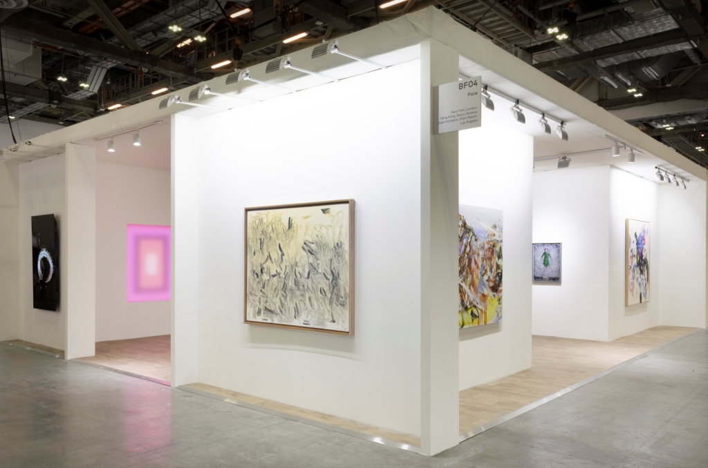 佩斯畫廊展出創作媒材含括:繪畫、雕塑、裝置、攝影和新媒體乃至於NFT藝術等各類作品,呈現跨距逾六十年的藝術史進程。展位的亮點包括:波普藝術領軍人物歐登伯格與妻子凡.布鲁根(Claes Oldenburg and Coosje van Bruggen)於1996年所作、高約1.5米的《高爾夫颱風》雕塑,呈現高爾夫球杆和球之間的生動共舞。擅以光線為創作素材的美國藝術家James Turrell以近作《拉瑪,長方型玻璃》呈現迷離的感官效果,以95萬美元售出。而凱斯.哈林(Keith Haring)、李禹煥(Lee Ufan)、仇曉飛等多位藝術家也於預展當日售出作品,至於Louise Nevelson、宋冬、尹秀珍、名和晃平(Kohei Nawa)之作亦獲不同的私人美術館購藏。