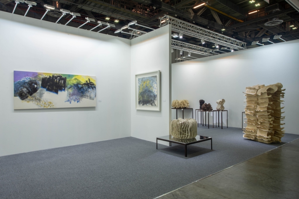 尊彩藝術中心在畫廊展位中呈現徐永旭與李重重的作品,並在NEW/NOW 展區推出周代焌的作品。李重重為現代水墨畫的實驗與開拓者,以拓墨和自動技法使明亮色彩在墨色中穿梭,表現自然的韻律、內在情感而呈現剛柔並濟的獨特風格。徐永旭的雕塑則強調身體的參與過程,將流暢的線條律動轉移至立體的雕塑表現,透過重複的堆疊展現陶土的細緻質感與維度構造,並進一步與空間產生對話。