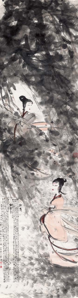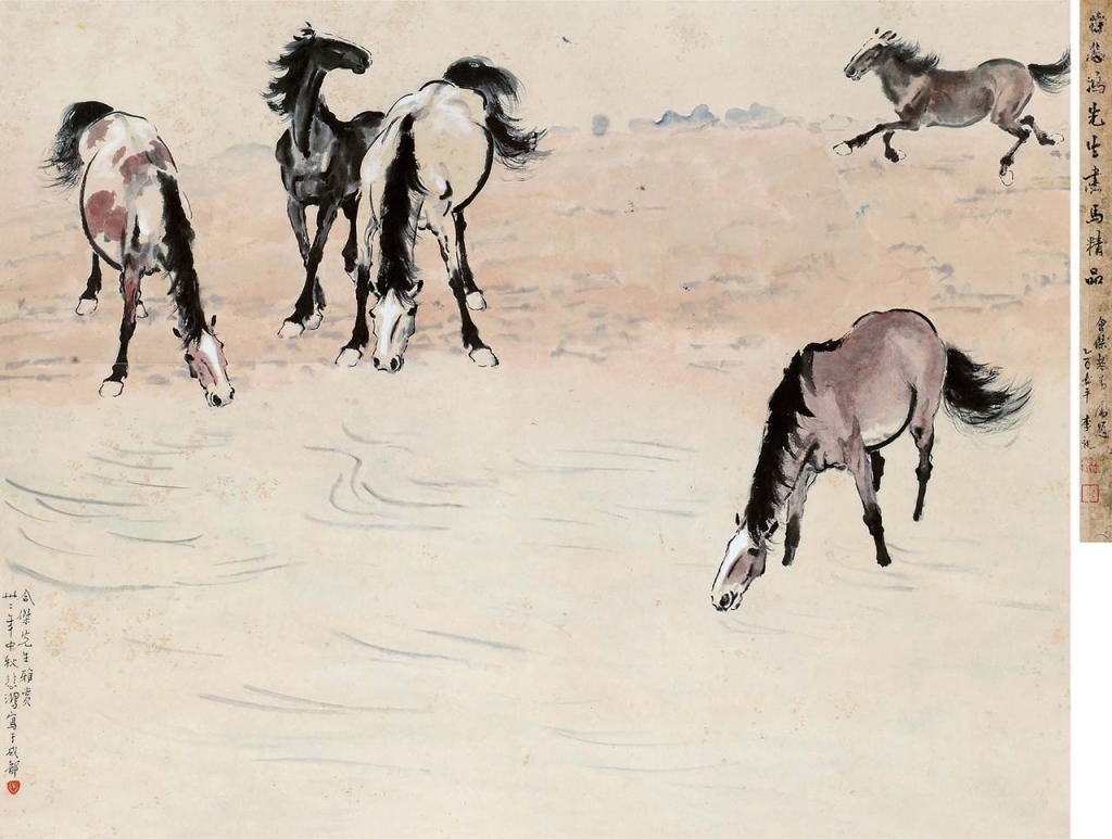 12月4日上午首先由中國書畫登場,「四海集珍—中國書畫(一)」成交額4082萬元,「中國書畫(二)」成交額1.07億元,成績喜人。晚間7時,中國書畫夜場拉開序幕,此專場共呈獻中國書畫84件,拍賣歷時五小時,成交額達5.48億元,成交率95%。其中,傅抱石、徐悲鴻、張大千、齊白石、黃賓虹等近現代藝術大師的作品表現出眾。張大千晚年潑墨〈宮亭湖〉從220萬元起拍,快速競價,最終以超估價4倍的價格1250萬元落槌,成交價1437萬5000元,成為該專場首件破千萬的拍品。該場估價最高的拍品傅抱石〈二湘圖〉,靈感來自屈原《九歌》,是為其「湘君」「湘夫人」系列第一力作。傅抱石甚喜屈原,「抱石」二字即典出屈原抱石投江,他甚至以《楚辭》常見之「珊、璇、瑤、玉」四字為愛女命名。此〈二湘圖〉採取高古遊絲描,線條細且富有彈性,湘君湘夫人的拖下長裙、長袖衣紋轉折處皆作弧形圓轉,人物形象取上古衣冠,是為畫家對東晉、唐人的風範再現。現場以7800萬元起拍,最終以9100萬元落槌,加佣金以1億465萬元成交,為本季保利拍賣最貴的近現代書畫。第二高價為徐悲鴻1943年作〈五駿圖〉立軸,成交價3450萬元。此作可謂徐氏畫馬的集大成者,涵蓋其畫馬的各種造型,彙聚多種經典元素,馬之頭部刻畫細緻入微,眼、鼻、嘴、耳皆栩栩如生,馬身細長,頸、胸、肚、臀、腿處比例精確,雖瘦骨嶙峋,卻有一種四蹄生風的力量感,馬尾與頸鬃飄動飛逸,筆墨酣暢淋漓,一氣呵成。第三高價為張大千1961年作〈贈臺靜農摩詰山園圖〉立軸,成交價2760萬元。臺靜農與張大千1930年代初在北平相識,其時二人常與溥心畬、張伯駒交往唱和,品談書畫。後大千流寓海外,仍常有詩畫相贈。直到張大千海外歸來,定居臺北外雙溪摩耶精舍後,兩位老友才又得以時相往來,聚會小酌,品酒論古。此作尺幅巨大,構圖飽滿,繪高山、巨石、飛瀑、流泉,有高山流水覓知音之意。
