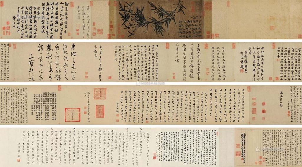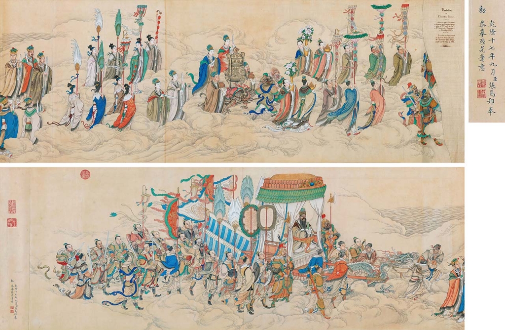 「仰之彌高—中國古代書畫夜場」甄選35件古代書畫精品,成交率91.42%,總成交2.68億元。最受矚目者,非宋代文同、蘇軾〈墨竹卷〉莫屬。文同畫竹,北宋《宣和畫譜》給予極高評價:「文湖州挺天縱之才,比生知之聖,筆如神助,妙合天成。」後人稱「墨竹一派,文石室為初祖」;而在文同的交遊圈中,蘇軾是非常重要的一位,後人論及文同繪畫,往往推蘇軾與之並舉,號稱「文蘇」,「文畫蘇題」甚成為後世鑑定文同真蹟的準則之一。此件〈墨竹卷〉元明以來著錄、題跋累累,以5000萬元起拍,經多番激烈競價,最終以1億600萬元落槌,加佣金以1億2190萬元成交,成為市場蘇軾第二高價的書畫作品(第一高價為2018年香港佳士得秋拍〈木石圖〉,成交價4億6300萬港元),同時也是文同最貴的書畫作品。本場第二高價為清乾隆宮廷畫家張為邦1752年作〈下元靈佑圖〉,此作是一幅道教宗教畫,描繪的是十月十五下元日,水官洞陰大帝率眾仙在雲水間行進的場面,著錄於《石渠寶笈》,成交價2622萬元。千萬成交拍品還有石濤《山水冊》,成交價1610萬元,亦為本場第三高價。善價成交者另如高鳳翰《八影圖冊》成交價977萬5000元、王鏊行書〈洞庭兩山賦〉及〈性善對〉成交價954萬5000元,皆表現不俗。