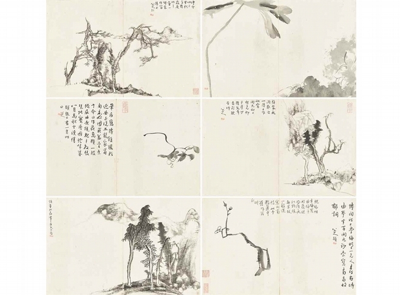 佳士得香港2016年秋拍中國古代書畫專場:清初八大山人〈山水花卉冊〉,以3974萬港元成交。圖╱佳士得香港。