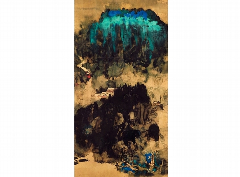 佳士得香港2016年秋拍「先鋒薈萃」專場:張大千〈青綠山水〉,以3414萬港元成交。圖╱佳士得香港。