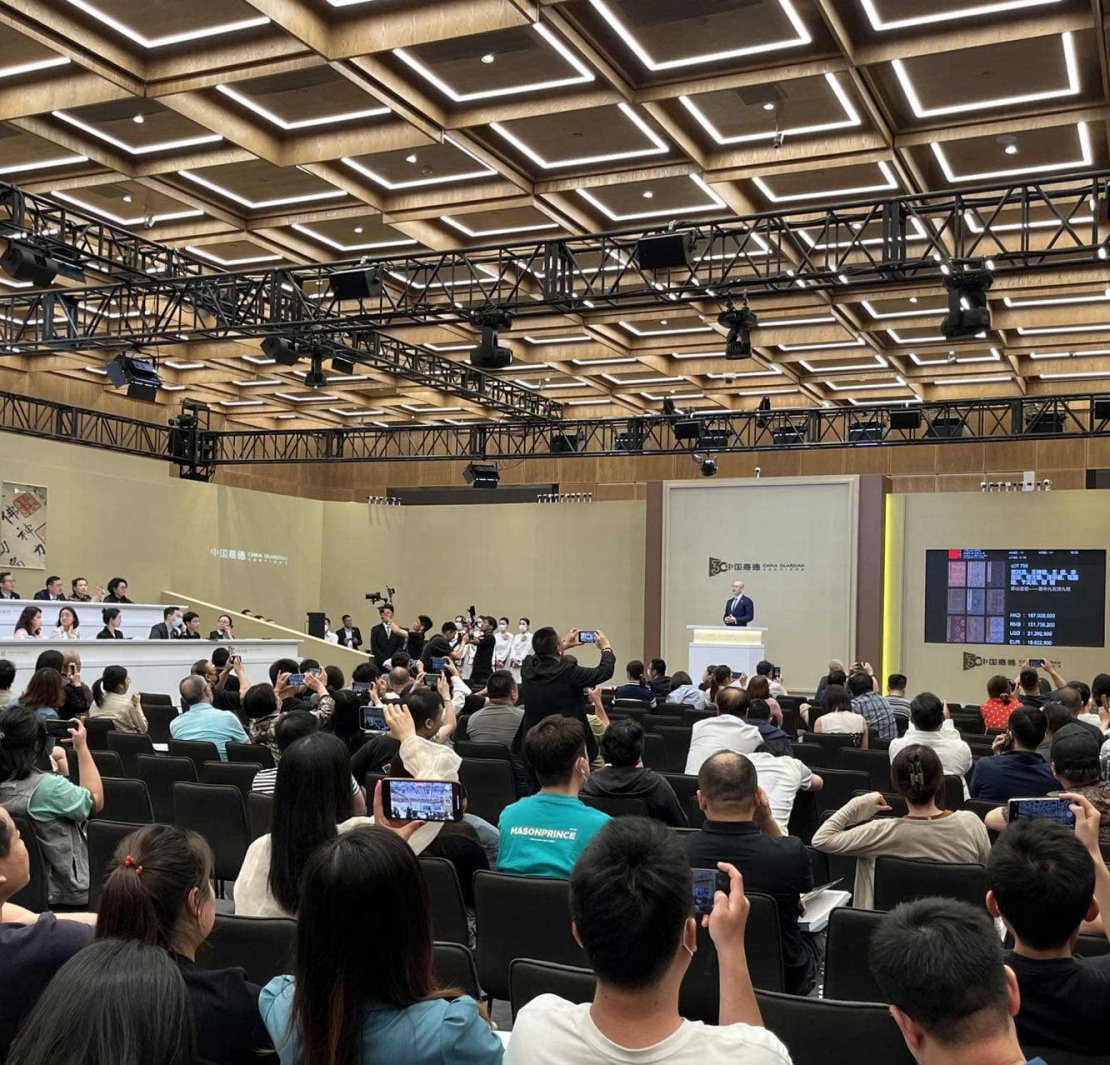 晚間六點半,競拍現場人潮湧現,人氣聚攏,即便適逢週一上班日晚間,仍抵不住參與者的熱情,成熟理性的基調中亮點頻現,競價明快,氣氛活絡。至深夜凌晨時刻,現場座席保有七八成滿,場後邊亦站立著一定數量的流動人群,壓軸的古書畫登場時仍還有買家親赴現場參與競投。經歷了將近17個小時的激戰,星夜燦爛,熠熠生輝,三大專場共斬獲人民幣9.83億元,締造1件億元、20件千萬價位拍品,成績卓越。