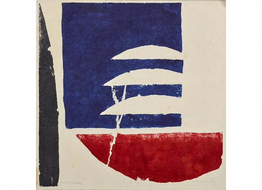 陳庭詩《晝與夜#77》,甘蔗板版畫,60x60cm,1982。(尊彩藝術中心提供)