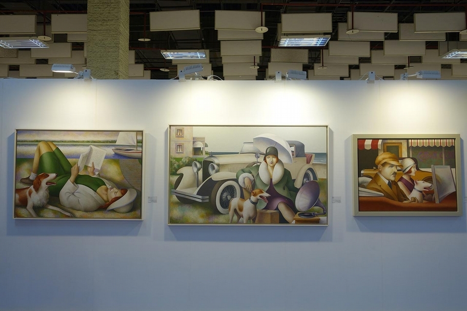 西班牙藝術家法比奧.歐羅他多(Fabio Hurtado)的作品多取材自1920、1930年代的電影場景,並以優雅豐腴的女性作為畫面主角,其作品於歐美畫廊巡展的經歷十分豐富,也曾獲國家級美術館永久收藏。同樣來自西班牙的Didier Lourenço,多以城市生活和女性日常片段為題材,畫面中豐富的配色和繁複的紋樣為其創作特色。