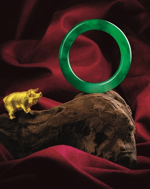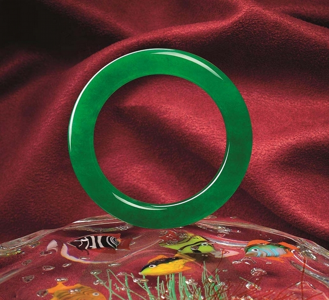 平安翡翠鐲光素無紋,美觀大方,橫斷面也近似圓形,象徵和諧圓滿,相傳能融會貫通華夏大地,承載著中國傳統文化天圓地方之說。是次拍賣的平安翡翠手鐲,質地細膩,種水極佳,輕敲可聽其清脆悠揚、悅耳動聽之聲,加上巧奪天工的技藝,手鐲線條優美流暢,為收藏者帶來寧靜平安。