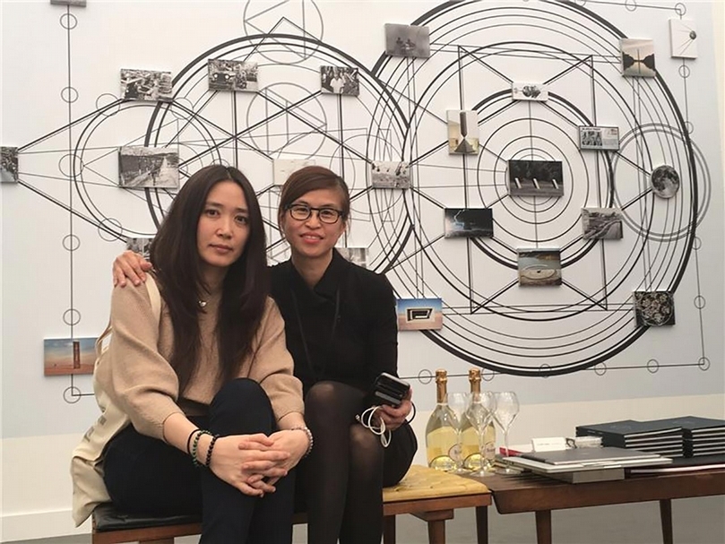 其玟畫廊負責人黃其玟與藝術家陳瀅如於紐約斐列茲藝術博覽會合影。(文化部提供)