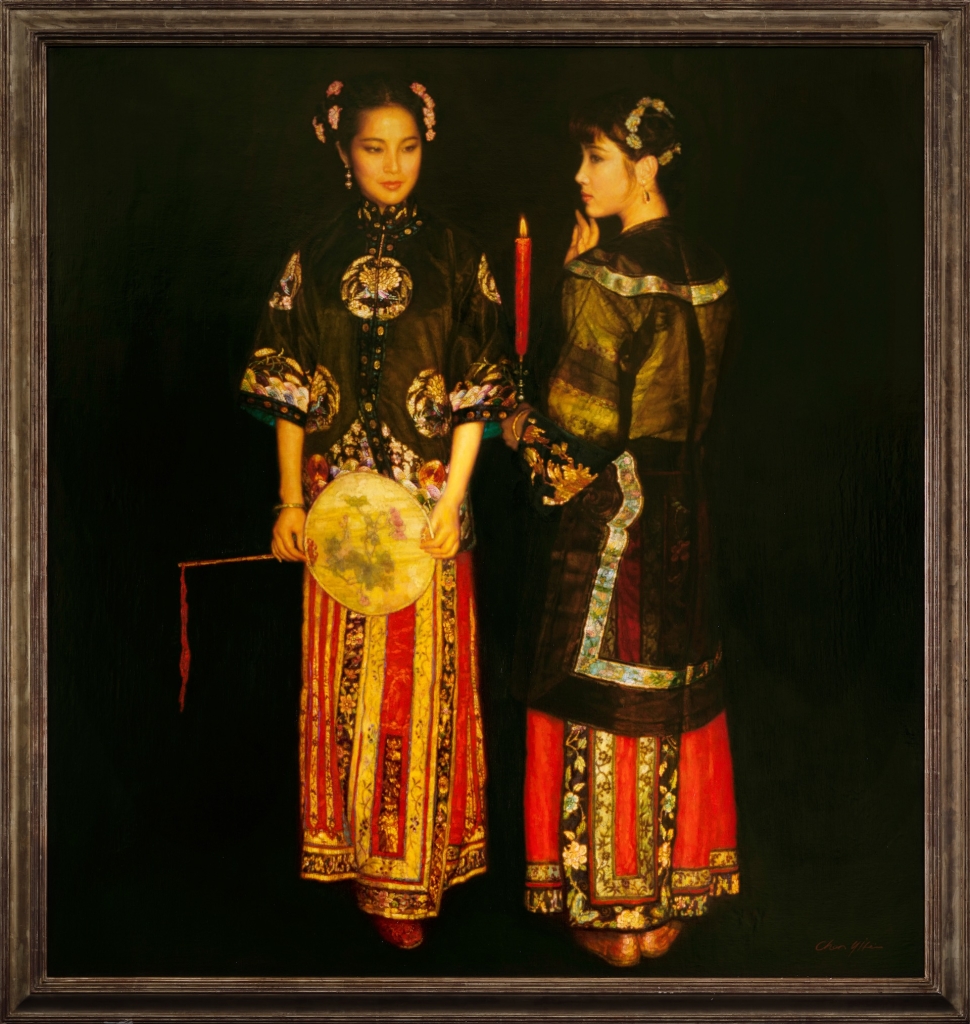 濃厚的懷舊氣息、優雅古典的東方情調一直是陳逸飛仕女題材的重要特徵。 本季登場的《西廂待月》與《海上舊夢》、 《潯陽遺韻》等仕女題材的繪畫同樣流露出沉靜迷人的氣息。《西廂待月》為陳逸飛借唐代詩人元稹所寫《鶯鶯傳》當中的《明月三五夜》一詩:「待月西廂下,迎風 戶半開, 拂牆花影動,疑是玉人來。」作畫,不僅代表藝術家「海上舊夢」美學,更是其極為稀有的「海上風情」系列前期的典範之作。陳逸飛的藝術視野始終在於求學美國受西方古典寫實主義的薰陶以及自身文化基因即東方海派詩意的情愫—兩種不同的文化之間的沉思、交集與互動,且堅持使用寫實主義技法,強調人物的心理、情感和神韻,創造出了一種令人神往的獨特美學範式;以類似於西方古典主義中戲劇舞台的閃亮黑色背景為底,及林布蘭式的考究光線,從意境上再現中國傳統美學仕女圖式。二十世紀80年代末,陳逸飛將其肖像描繪的對象從西方樂手轉移到身著清末民初服飾的中國女性,開啟了「海上風情」系列,將當代觀眾帶回到二十世紀20-30年代的老上海,並重新審視其人物、文化景觀與時代精神,也為西方觀眾欣賞東方浪漫醉人的文化風情打開了一扇窗。