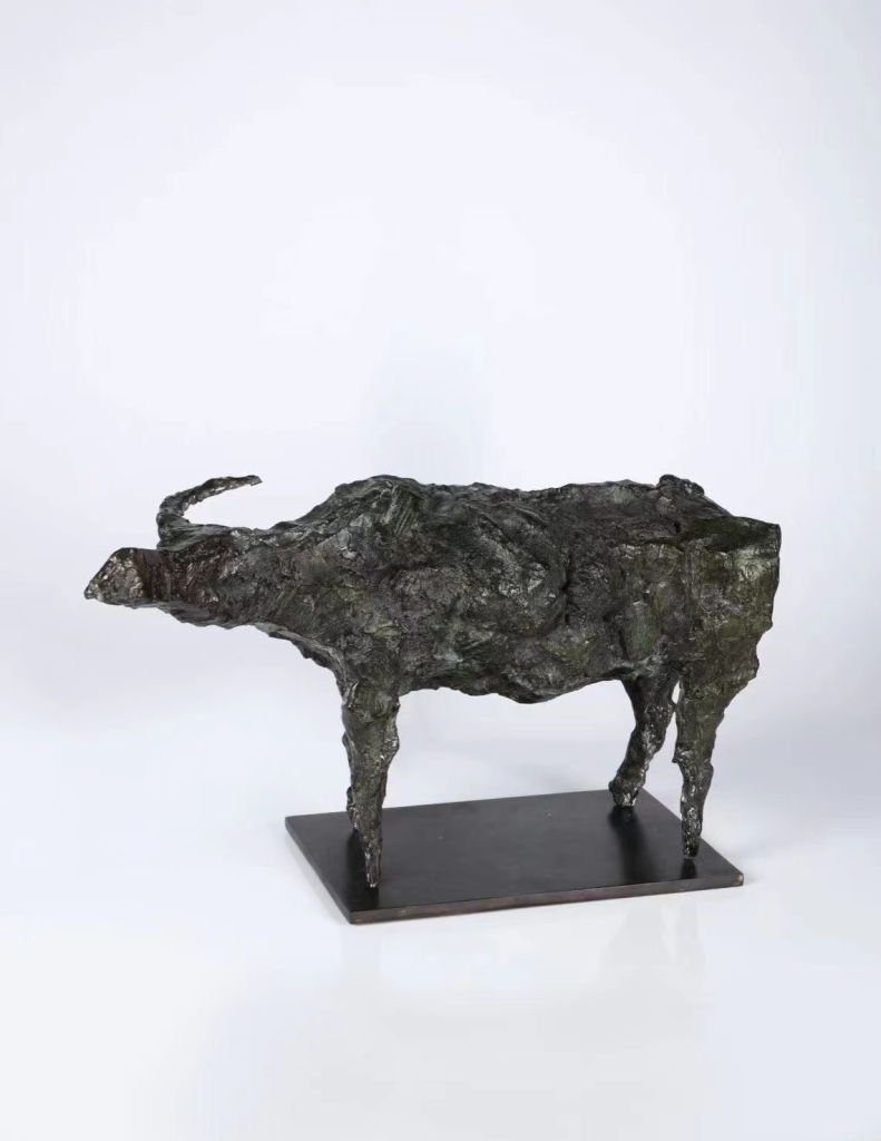 保利香港在本季呈現旅法藝術家熊秉明家屬舊藏的木板油畫《無題》、《結婚》以及銅雕作品《直立牛》等作,細訴藝術家一生透過不同媒材與風格在創作生涯的求索。《直立牛》以銅為媒材,呈現牛身的樸拙形態,表面肌理粗糙卻稜角分明,四隻腿直立於地而切合名稱。熊秉明的「牛」系列銅雕各有不同姿態,而《直立牛》最明顯的特徵為四根筆直的大腿雖不粗壯卻筆直堅穩,牛角具鋒利之感。若說每隻牛都借指不同的中華傳統精神,《直立牛》代表的則是堅韌、仁厚與勤勞,即使從泥淖而出,仍剛毅地朝自己想要的方向前行,默默承擔人生中各樣的責任,體現出中華文化中入世的儒家觀念。《無題》由三聯畫串接而成,左聯描繪巨大的蝴蝶形風箏在空中飛揚,孩童於土地上肆意奔跑;中聯描繪一隻水牛身影,被放大的犁暗示著水牛正在辛勤鋤地;右聯則是離人騎馬遠去的身影。三個場景均為藝術家對家鄉印象的提取,其中的牛和馬更是熊秉明雕塑作裡重要的創作主題。《結婚》則是熊秉明為數不多的平面作品中極為罕見的抽象創作,人物與場景的描繪被簡化為明亮跳躍的色彩與線條。