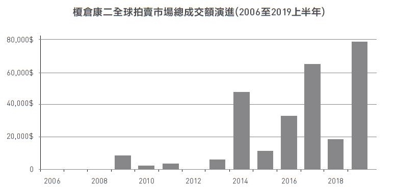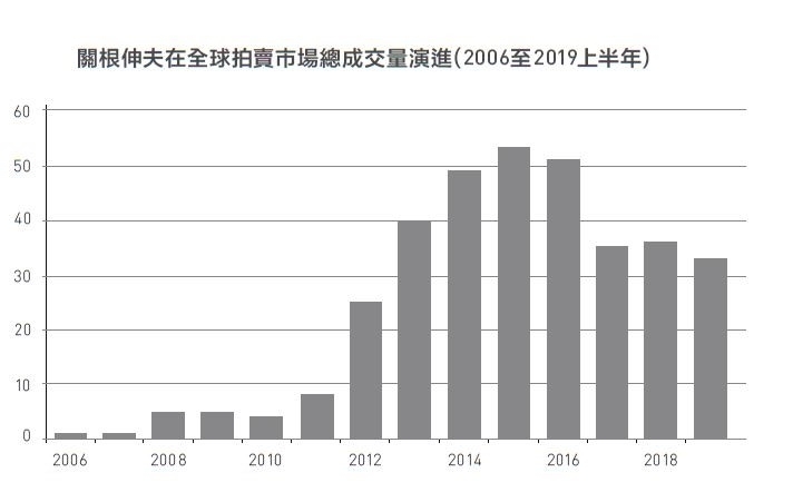 關根伸夫在全球拍賣市場總成交量演進(2006至2019上半年)
