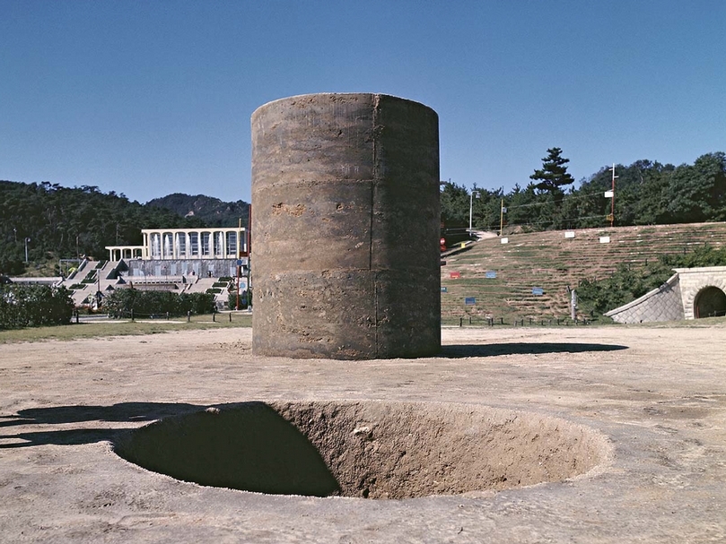 關根伸夫是物派運動的指標性人物,1942年9月19日生於日本埼玉,2019年5月14日在美國洛杉磯辭世,享年76歲。他在東京多摩美術大學學習油畫,很快就對抽像藝術產生興趣,並與李禹煥一同加入了物派團體。1968年,關根在該團體另外兩位藝術家小清水漸和吉田克朗的協助下,創作了指標性的作品《位相—大地》。這件雕塑由一個直徑六公尺的大洞構成,掘出的土則壓實製成幾公尺高的泥土圓柱,這不是景觀的整治或原始美學的掌握,而是為了凸顯事物之間的關係。因應1970年威尼斯雙年展而創作的《空相》則為他贏得了國際聲譽,這件作品今日永久展示於丹麥胡姆勒拜克(Humlebaek)的路易斯安那現代藝術博物館(Louisiana Museum of Modern Art),這顆巨大的石頭由一個能反射周圍環境的鋼柱所支撐,完美展現了該項運動所傳達的基本概念。