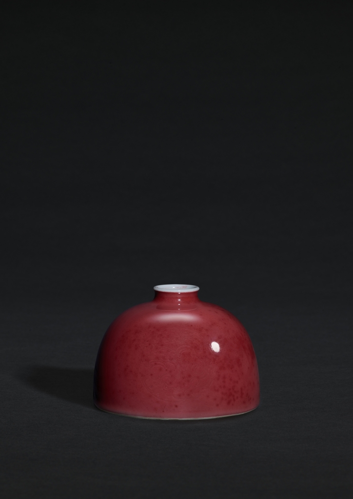 5.清康熙《豇豆紅釉鏜鑼洗》,「大清康熙年製」款,徑11.8公分,估價50萬至70萬港元,成交價381萬港元。