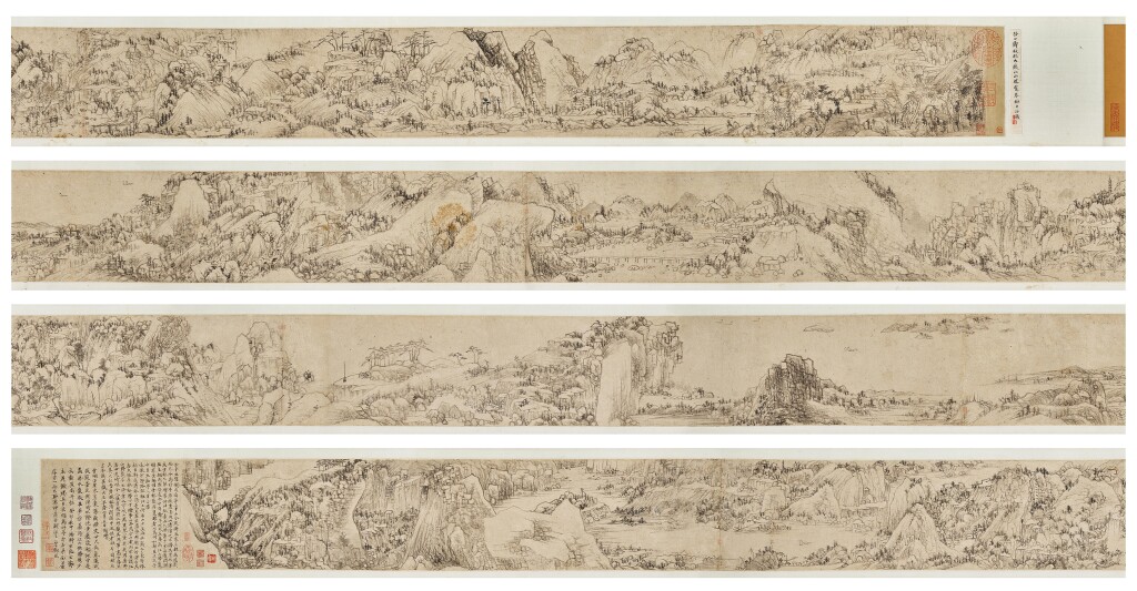 3.清代鄭旼《江山勝覽圖卷》,12.5×485公分,估價500萬至800萬港元,成交價1013萬港元。