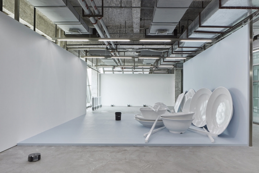 藝術家周育正個展「刷新、犧牲、新衛生、傳染、清新、機器人、空氣、家政、阿姨幫、香煙、戴森、現代人」於馬凌畫廊上海空間現場。(馬凌畫廊提供,©張宏)