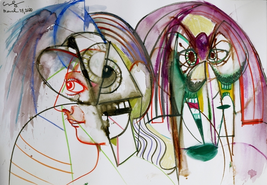 即將在明(3)日上線的「喬治.康多(George Condo),遠方人物」線上展廳展售會,展出的繪畫作品是藝術家過去3週裡在自己紐約州工作室裡創作的,稱為《隔離肖像》(Distanced Figures)系列,希望喚起人們在這非常時期中保持社交距離的孤獨經歷。