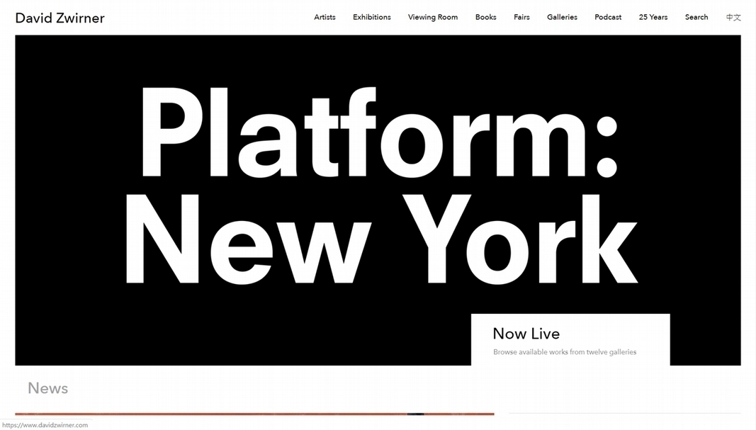 早在2017年就開始發展線上業務的卓納畫廊,是業界第一家線上展廳,目前已進化為畫廊的「第七空間」。畫廊主大衛・卓納於4月6日接受國際藝術媒體採訪表示,在這個資金流入不明確的期間,並不是單純的把作品放上線上,就是有用的。現在的市場是非常兩極,非常挑剔的,有一類客人,是完全對你線上平台沒有興趣,但是畫廊如何對那些有興趣買藝術品的客人,利用線上平台,營造像博覽會期間,大家英雄所見略同,帶來搶作品熱度與氛圍,因此,線上行銷和個性化宣傳,就是重點。