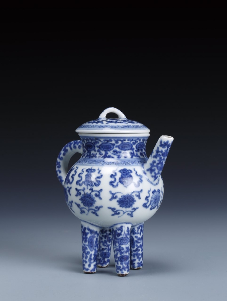 長流美術館館長黃承志細細導介2023秋季精選拍品,「文物珍玩」以清乾隆《青花八吉祥燒菊仙蓮紋四足蓋壺》為主打星。黃承志說明,近年來日本景氣消退,加上收藏世代之交替,很多精品都釋出市場,對於是很好的收藏機緣。百年三大家族乃石井光次郎家藏,他曾任臺灣總督府秘書官,後來擔任日本眾議院議長,這件拍品還附有原裝日本蒔繪漆盒,上面的圖案就是他們的家徽。該壺通體以青花為飾,蓋面和外壁頸部飾以纏枝靈芝紋,肩及蓋邊有回紋,腹部主題圖案為蓮托佛教吉祥八寶,飾以纏枝靈芝為陪襯,分別飾於蓋面、頸、流、曲柄和四足上,曾著錄於2010年《書・香・茶・花:兩岸文物精品展》。另一件,曾為葉公綽舊藏的戰國《錯銀篆書銘文提樑鍊蓋青銅壺》,錯銀紋飾清晰,線條優雅,整體鑄造難度高,其上具有銘文,值得好好研究。