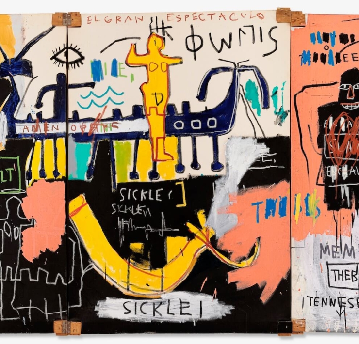 巴斯奇亞的《無題》在2017年5月18日紐約蘇富比舉行的「當代藝術夜拍」中被日本藏家前澤友作以1億1050萬美元的天價購得。(蘇富比提供)