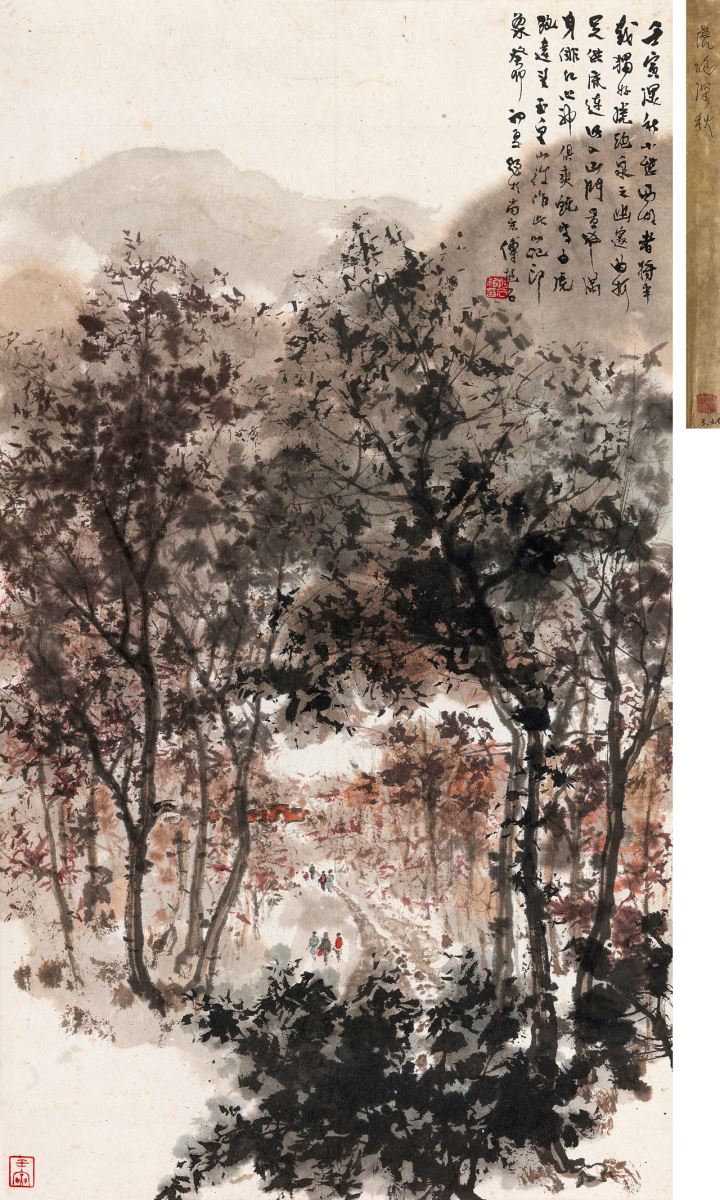 傅抱石《虎跑深秋》,立軸、設色紙本,80.3×45cm。(中國嘉德提供)
