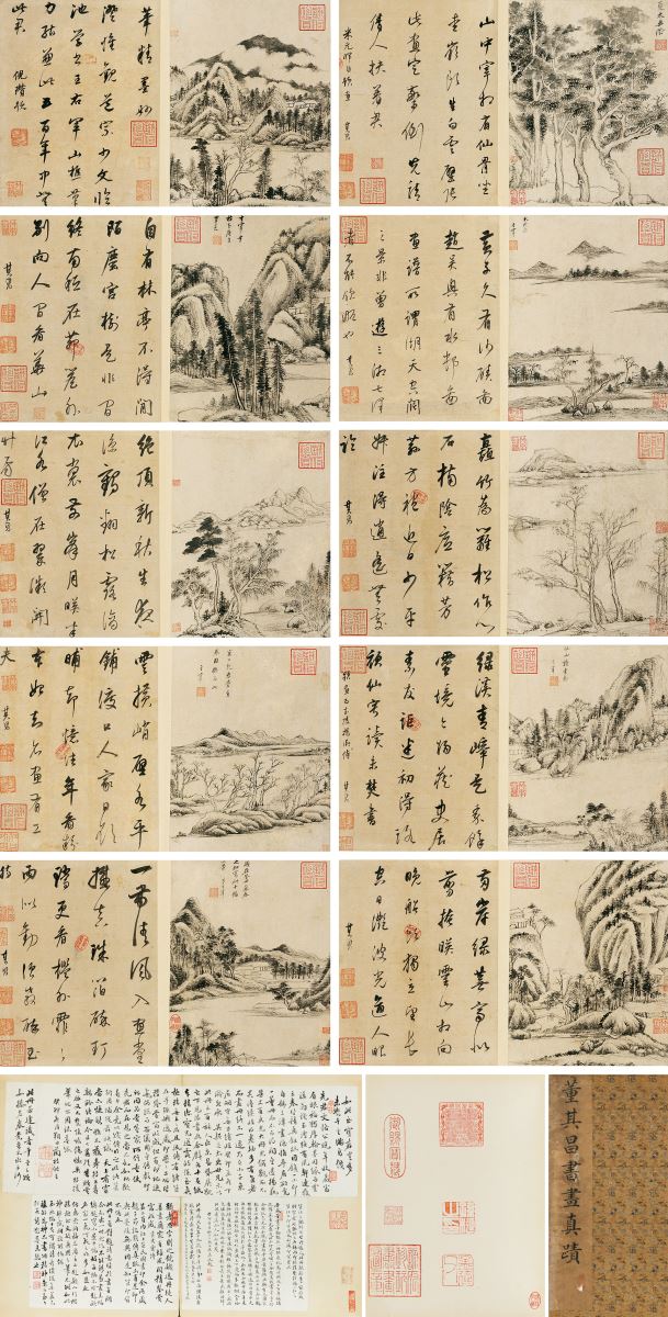 董其昌《書畫合璧山水小景》冊頁(十開二十頁),水墨紙本, 29.5×22.5 cm( 每幅),1613 年。(中國嘉德提供)