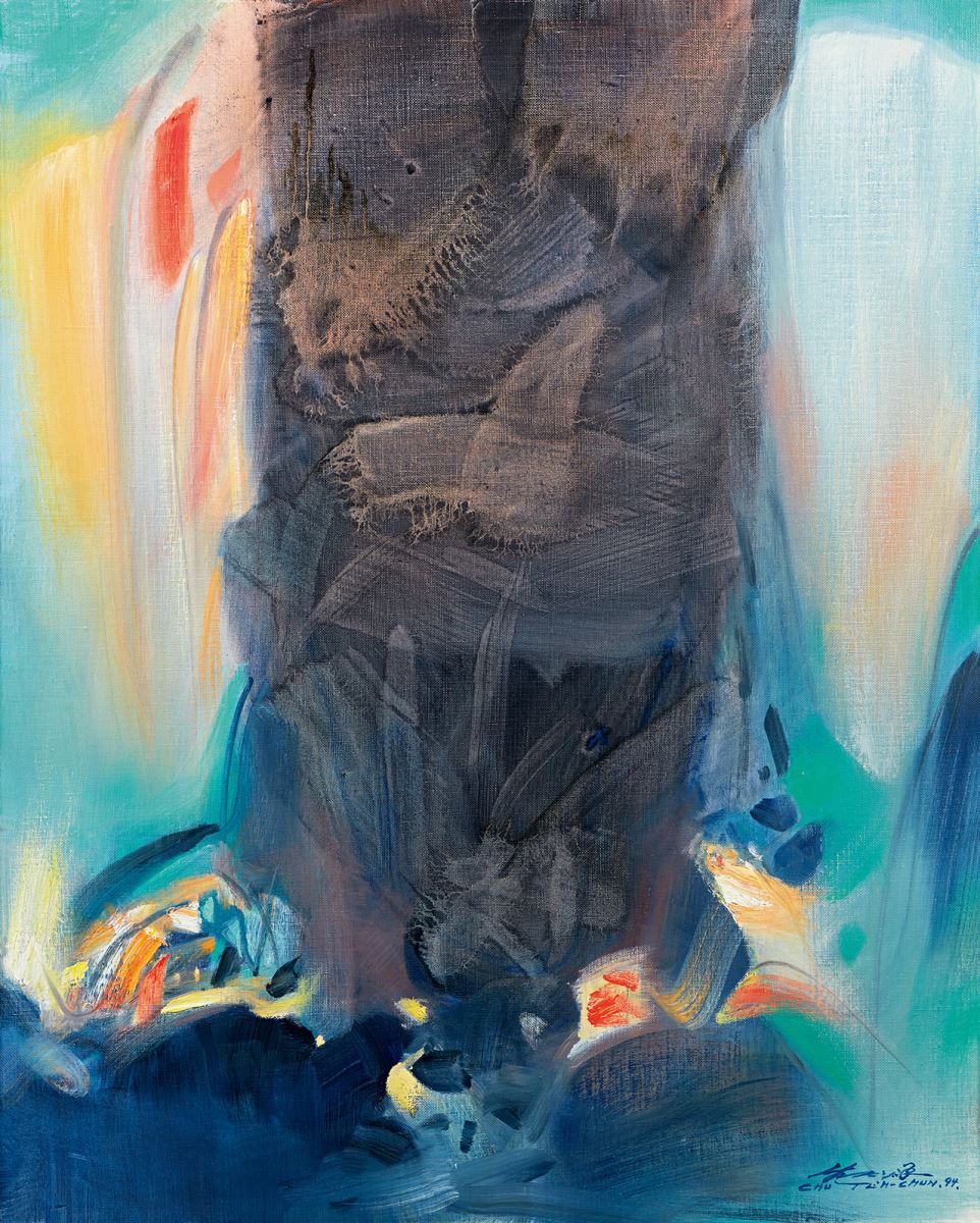 朱德群《發電體》,油彩、畫布, 81 × 65 cm,1994年作,估價:200萬至 300萬港元。(中國嘉德香港提供)