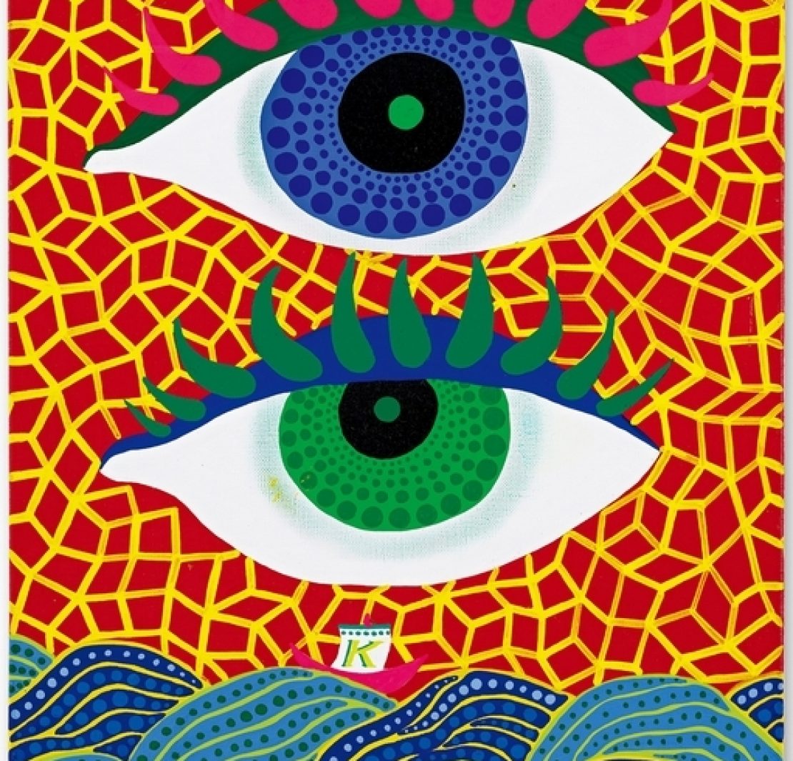 草間彌生《大海的眼睛》,壓克力彩、畫布, 45.5 × 38cm,約1970年代作,估價: 300萬至 400萬港元。(中國嘉德香港提供)