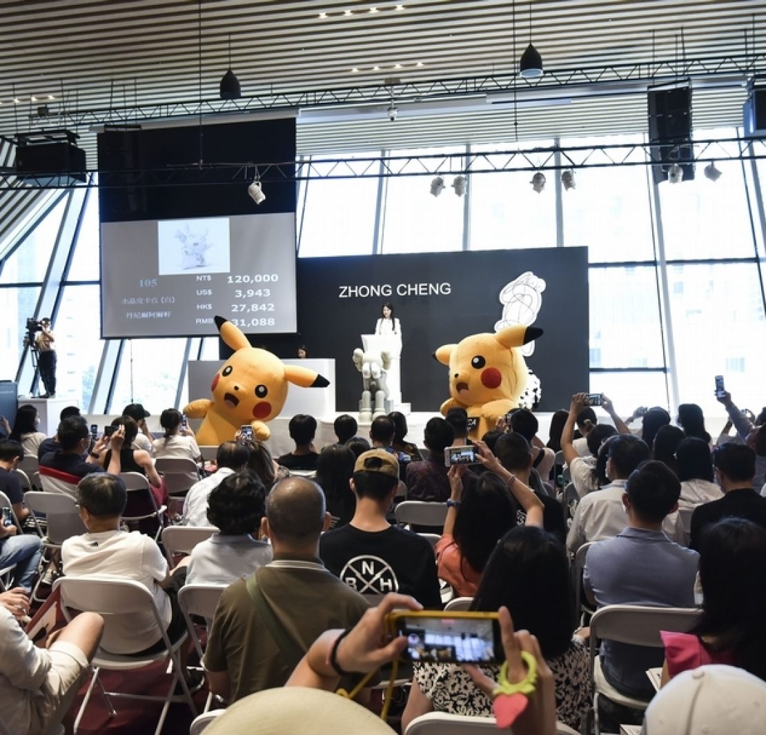 拍賣中拔得頭籌之作為KAWS的《同伴(經過)(灰)》,全球僅限量10件的大型銅雕,在預展時即掀起一股轟動話題,歷經藏家們幾番緊湊的角逐,得勁敲出新台幣2,040萬元的成交佳績。近年深受國際讚譽的五木田智央,大幅解構抽象人物畫《Los Lobos》則不負眾望地以新台幣1,560萬元排名亞軍。