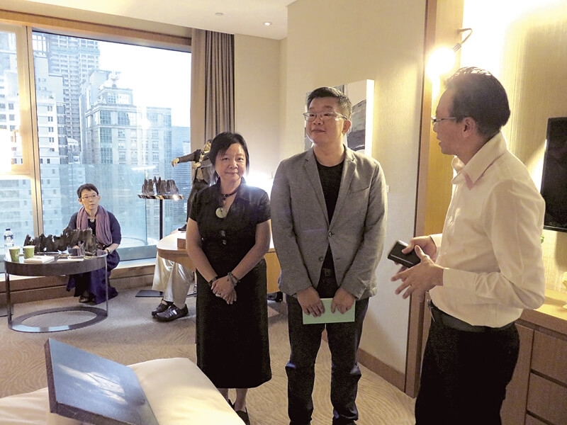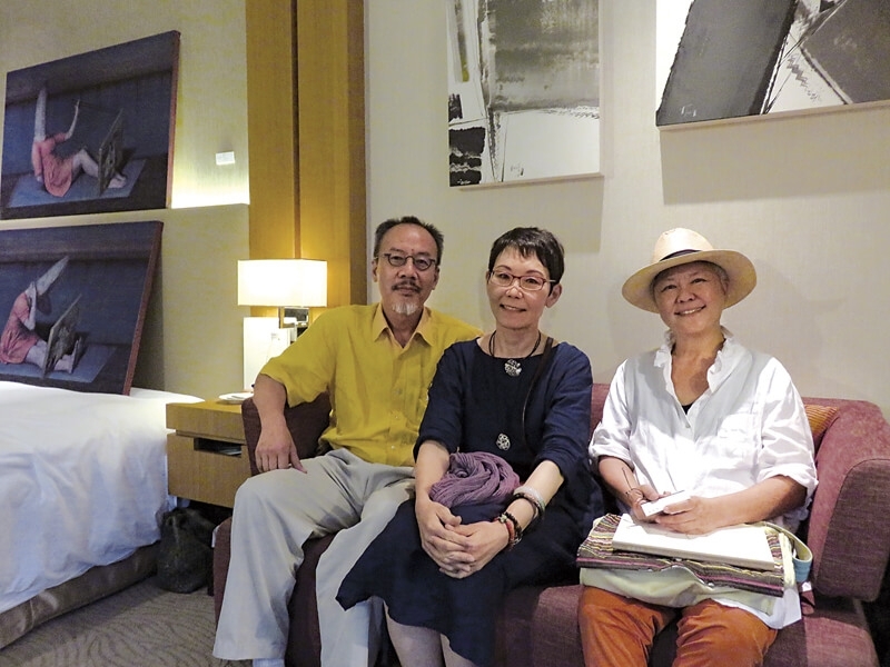 北美館策展人劉永仁夫婦與藝術家賴純純(右一)於大象藝術空間館。(左至右)
