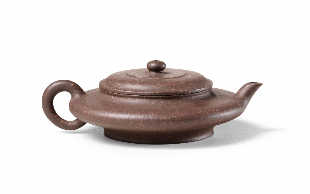 1.《宜興紫砂鼓腹扁圓形茶壺》,「大彬」楷書款,橫15.5公分,估價3萬至5萬港元,成交價406萬8000港元。