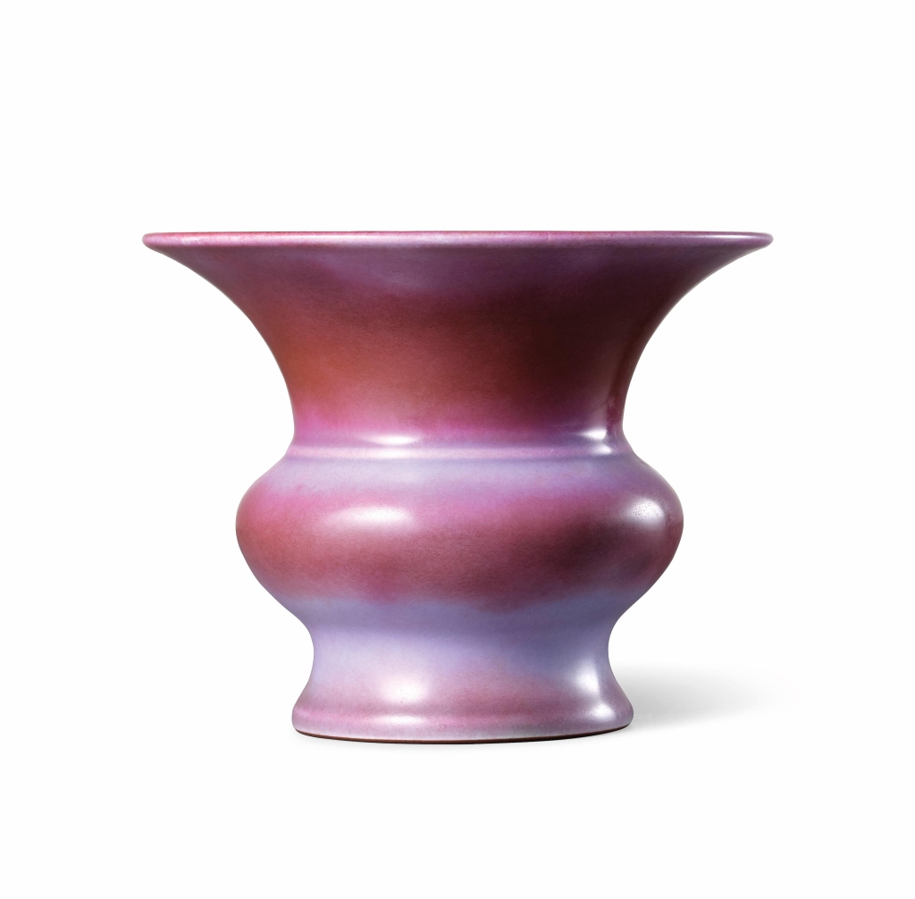 5.清雍正《仿鈞窯玫瑰紫釉尊》,「大清雍正年製」篆書刻款,高16公分,估價120萬至200萬港元,成交價254萬4000港元。