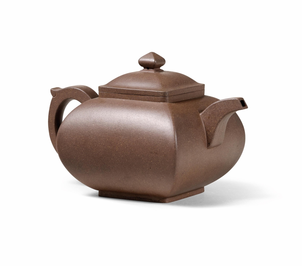 7.《宜興紫砂鼓腹四方壺》,底刻「甲寅秋日徐友泉製」字,橫14.7公分,估價3萬至5萬港元,成交價178萬2000港元。
