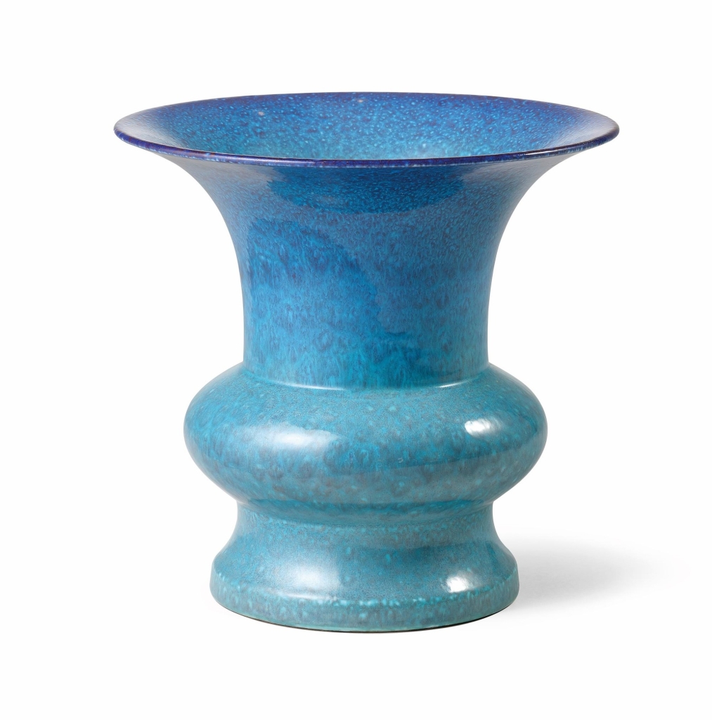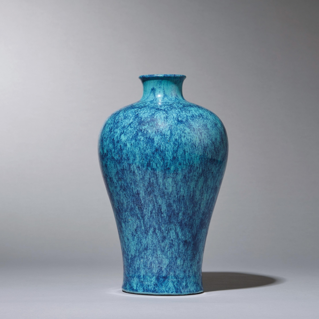 3.清雍正《爐鈞釉仿古尊》,「大清雍正年製」篆書印款,高17.5公分,估價220萬至320萬港元,成交價356萬港元。